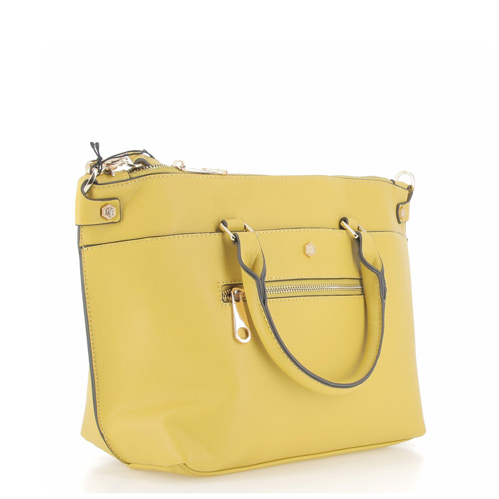 La borsa Lumberjack donna in giallo è l'accessorio perfetto per la donna moderna e alla moda. Realizzata in pelle di alta qualità, è ideale per un look trendy e glam. Con ampio spazio interno per tutti gli essenziali, è perfetta per ogni occasione.Stagione: