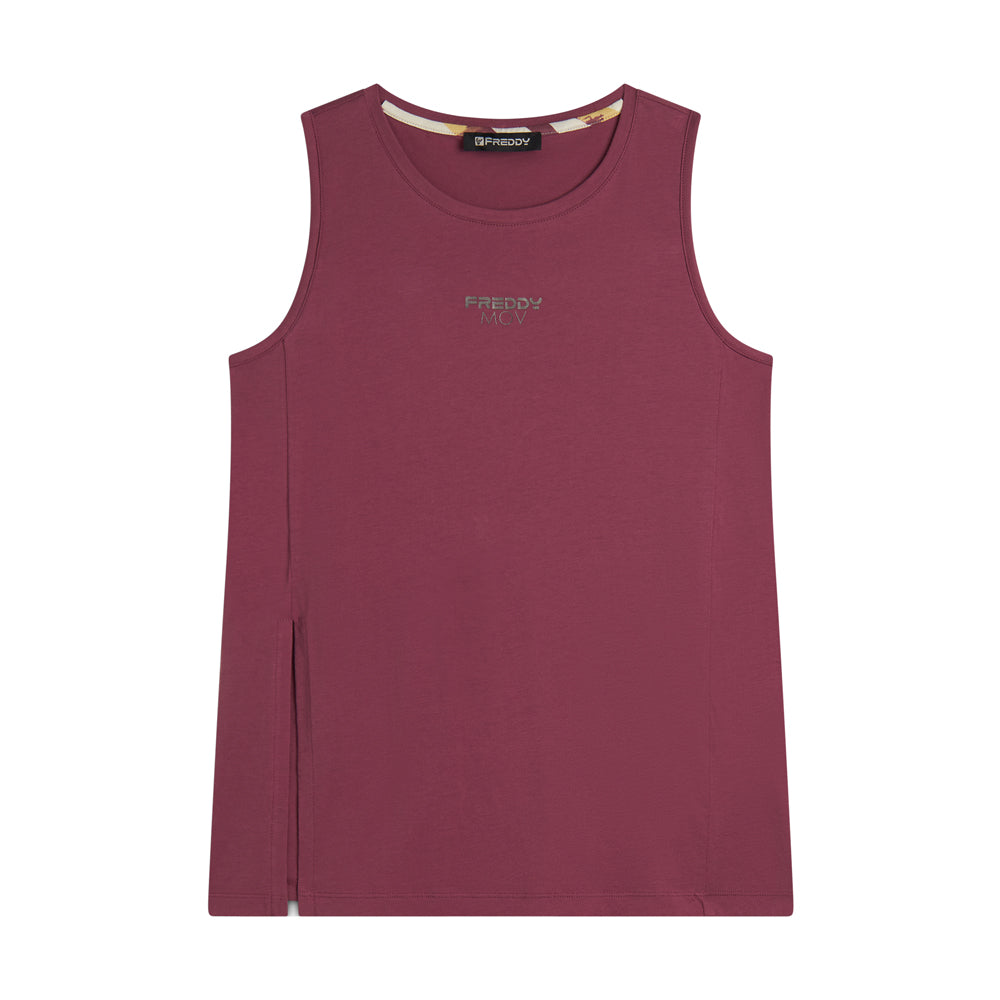 Canotta Freddy Donna - Viola, perfetta per le donne che cercano comfort e stile durante l'attività fisica. Realizzata con materiali di alta qualità, garantisce libertà di movimento e traspirabilità. Perfetta per un look sportivo e alla moda. Trendy, comfort, sportivo.SKU: