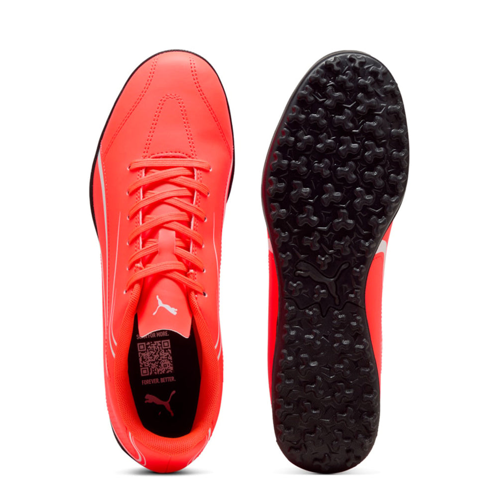 Scatena la tua passione con le Scarpe Calcetto Puma Vitoria TT Uomo in arancione. Perfette su superfici sintetiche, uniscono stile e prestazioni, garantendo comfort e grip eccezionali. Domina il campo con Puma!SKU: