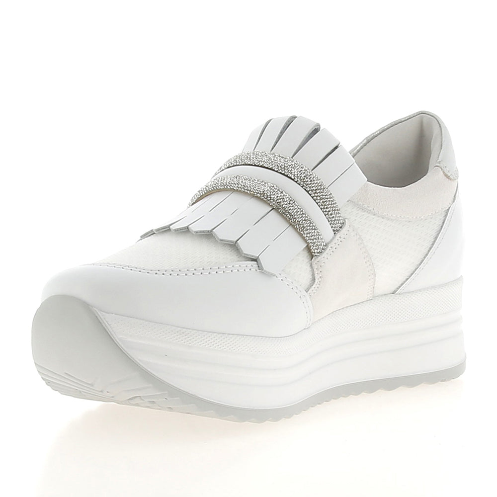 Slipon NeroGiardini donna in bianco, ideale per la cliente femminile. Con comode calzature slipon, modello E409816D707. Perfetto per un look casual e alla moda.Stagione: