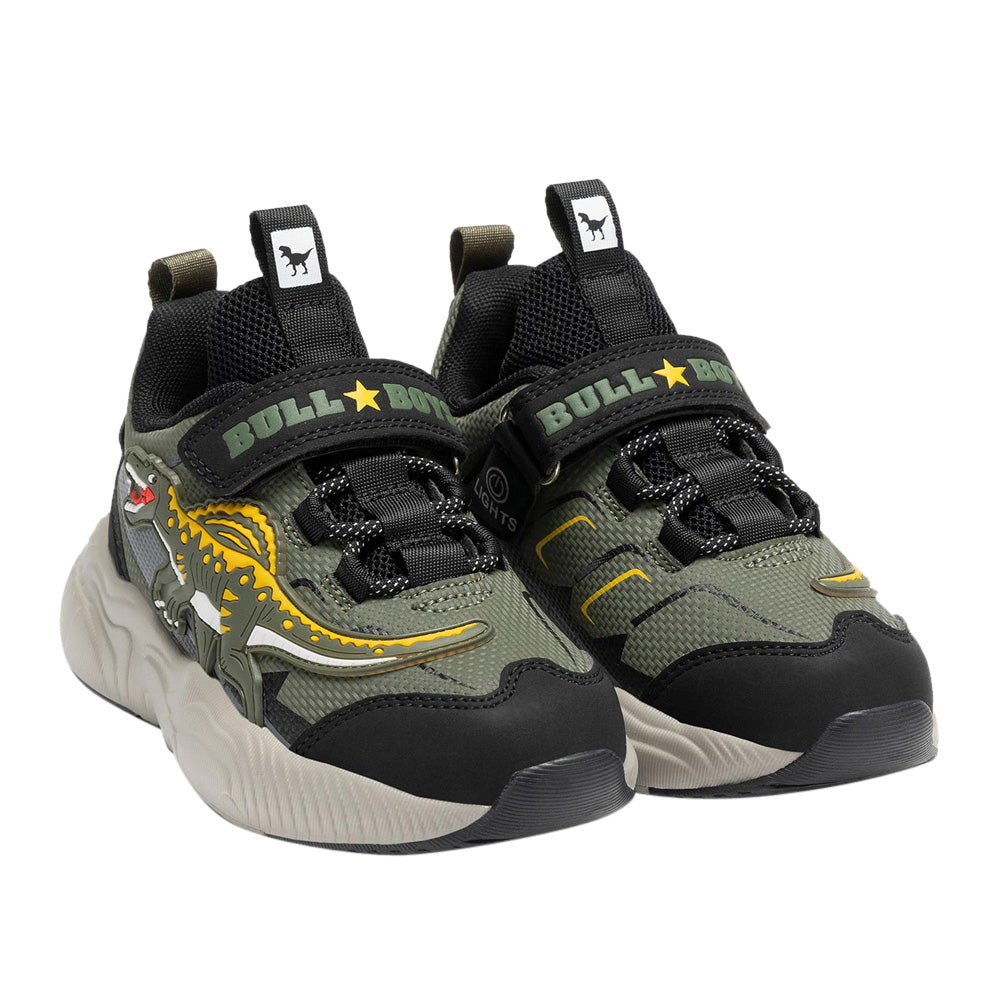 Scopri le sneakers Bull Boys Spinosauro per bambino in nero! Design accattivante e irresistibile per giovani esploratori. Combina stile e comfort per ogni avventura!Stagione: