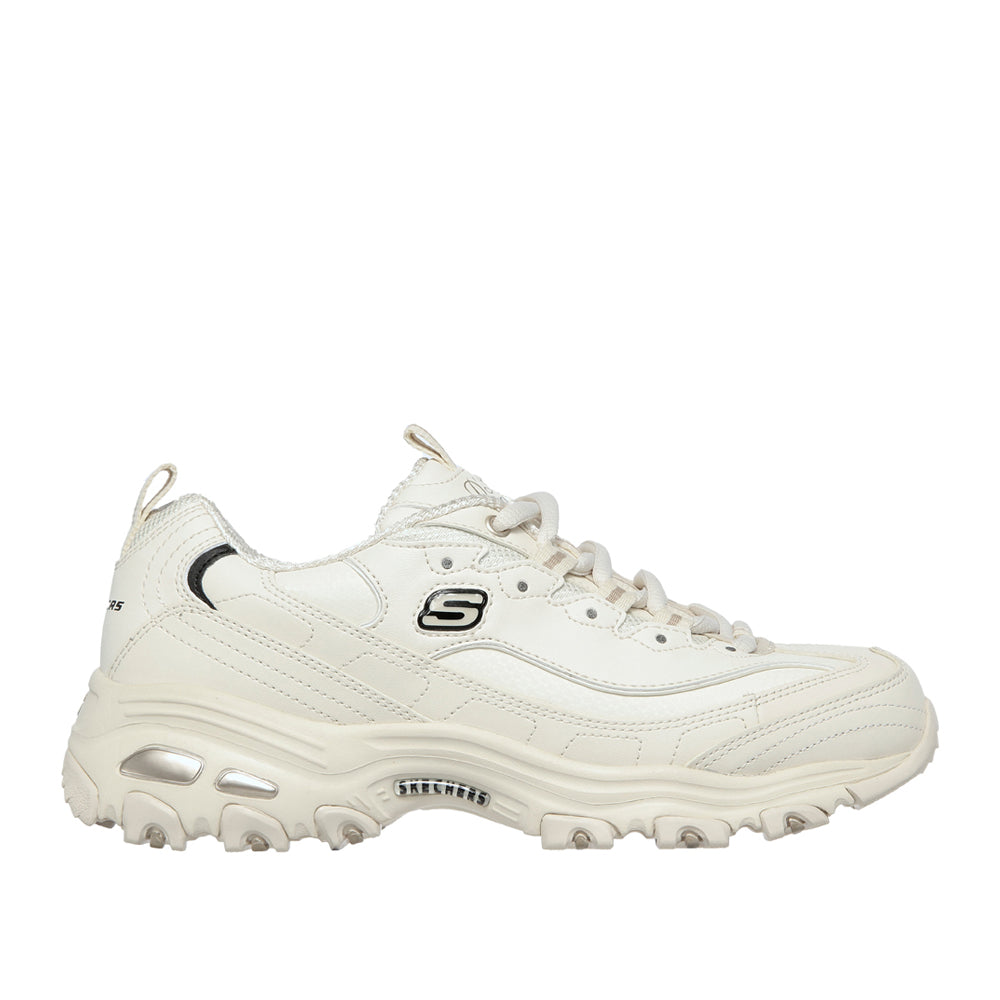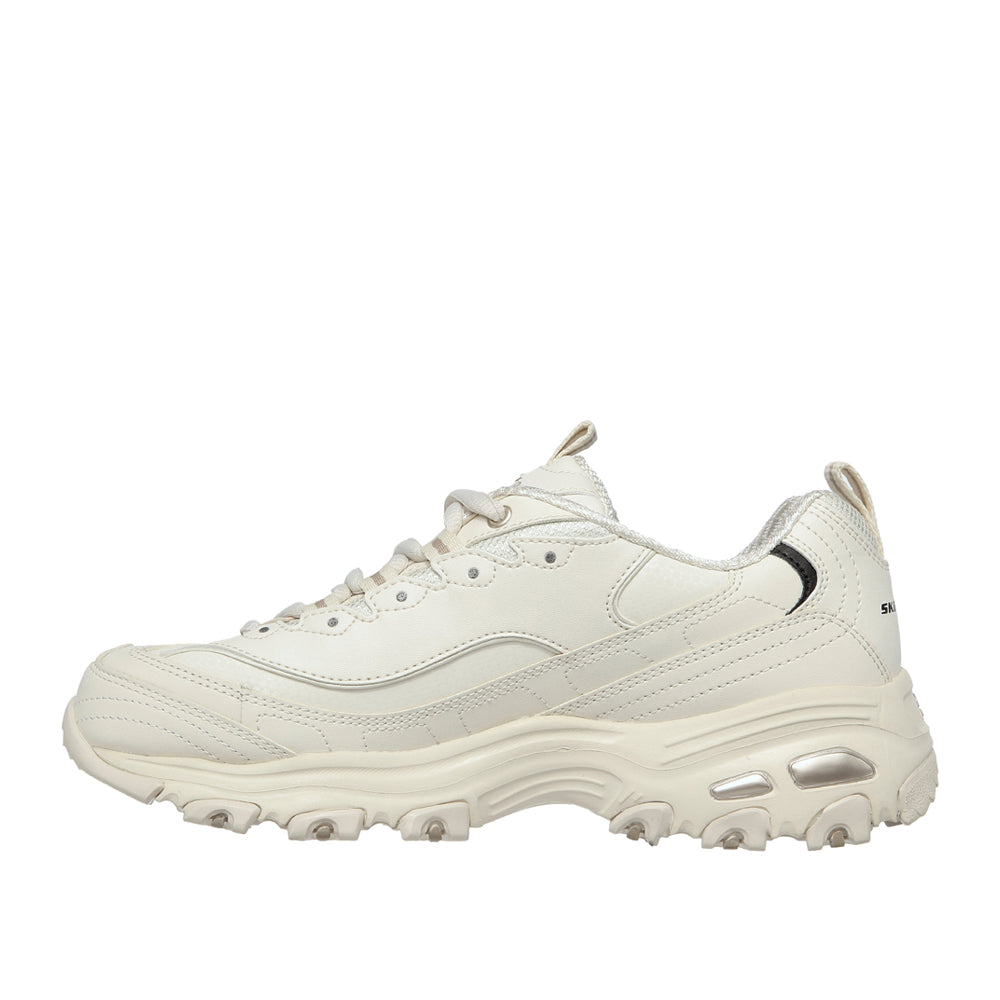 Skechers D'Lites - Fresh Start: sneakers bianche dal design dinamico che uniscono comfort e stile. Ideali per donne moderne in cerca di eleganza e praticità quotidiana. Espressione di libertà e freschezza.SKU: