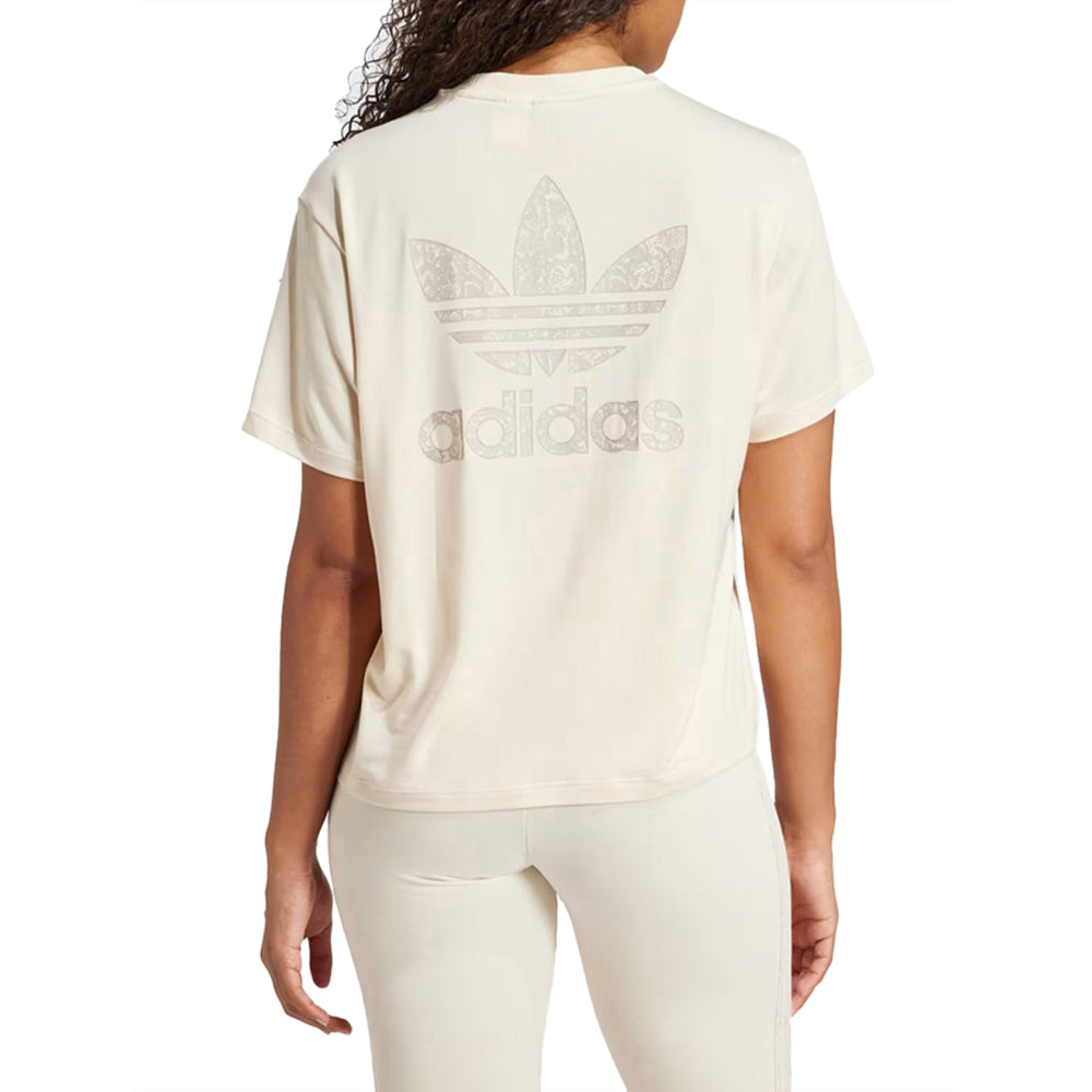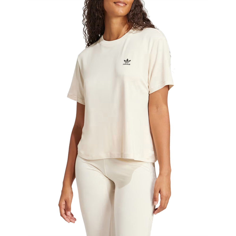 T-Shirt Adidas Originals Donna in bianco. Design essenziale con logo iconico, per uno stile casual e di tendenza. Perfetta per chi ama il comfort senza rinunciare all'eleganza. Ideale per un look moderno e versatile.SKU: